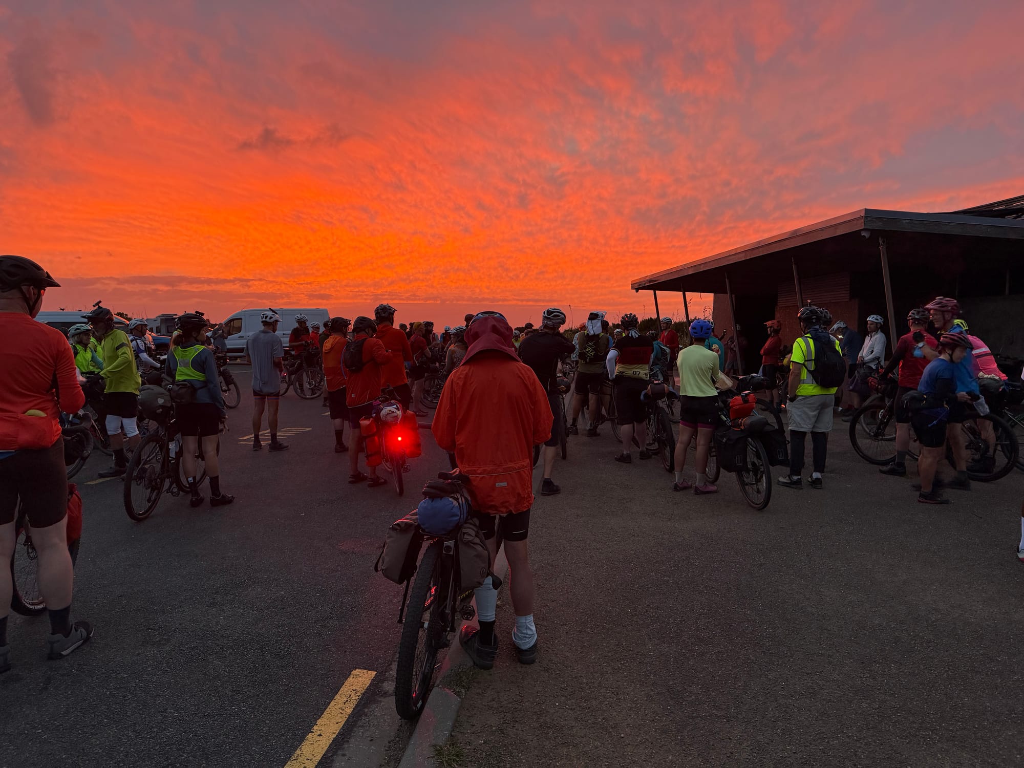Left Kaitaia with what we thought was plenty of time but we had to set bikes back up from having to fit them on small car rack. None of us had to pick up trackers so didn't even see the desk with Mr Mapprogress and the stickers being given out sitting in the dark.