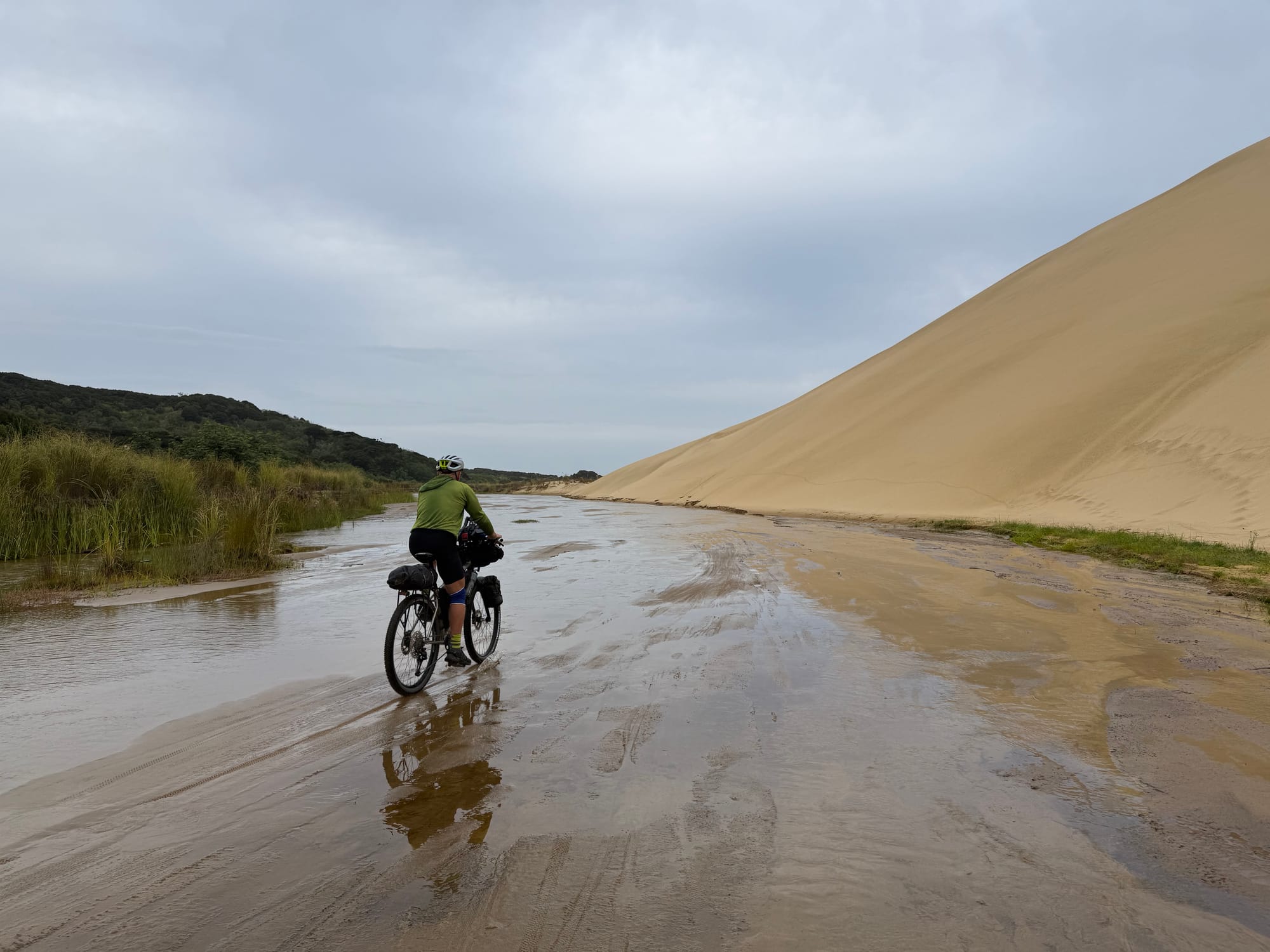 Missed turn to holiday park for bike wash as off route so came back. Brushes and bucket there so used brush on chain and cassette and hosed sand off bike. Lots sand in socks and shoes too from hike a bike.