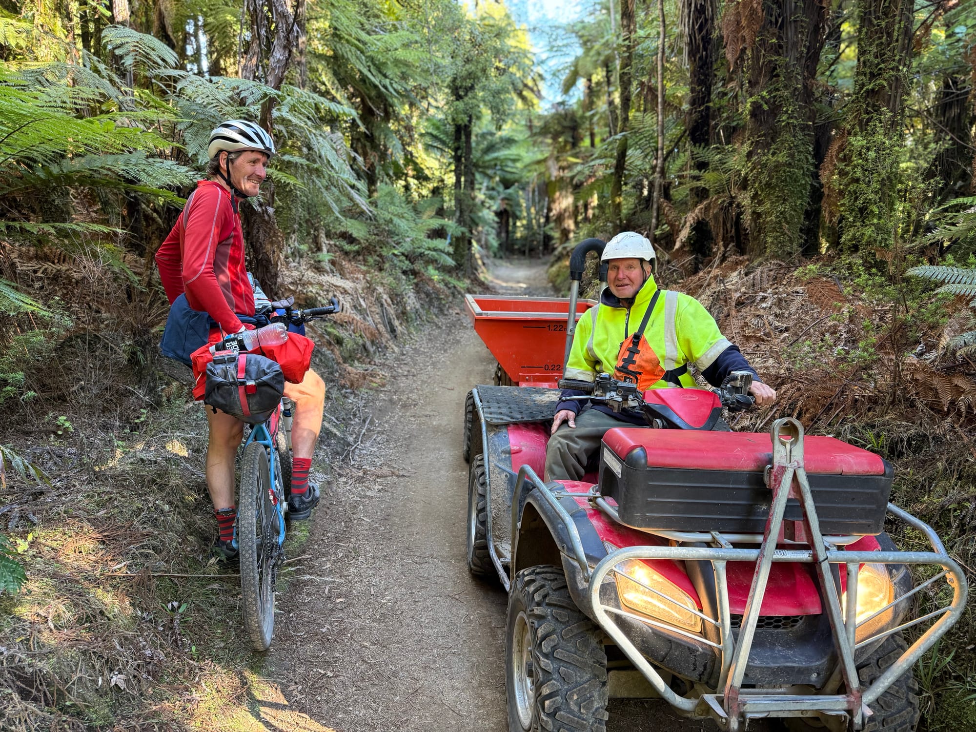 It turned out conditions were dry on the climb but here was a lot of highly enjoyable singletrack through lush native bush, ridable bridges etc. This is the route of the Te Araroa as well. I liked this section a lot more than the Timber Trail.